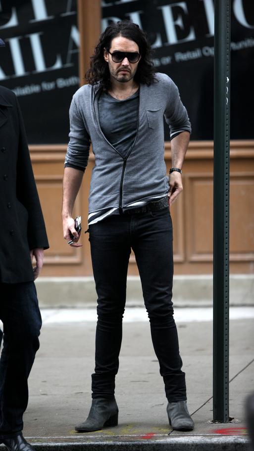(Hmm, I wonder who could best help me illustrate that point. Oh… I know, annoying celebrity and hipster troll Russell Brand. Look at the cowboy boots paired with hipster uniform. The skinny pant legs are choking to death on the boots. That sort of outfit screams for a dressed down shoe. Katy Perry, i’m so sorry this happened. I’d be happy to comfort you, make out with you. Whichever.)
