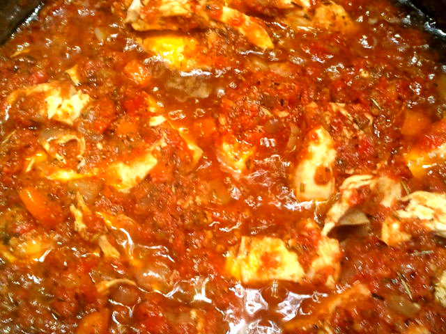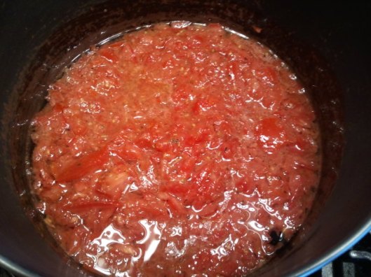 Now get everything into the pot and cook for at least forty-five minutes to an hour on a low simmer. This brings all the flavors together into one harmonious work of art. Stir every once in a while. Your sauce will reduce and thicken. That’s ok. Keep the heat low though.)