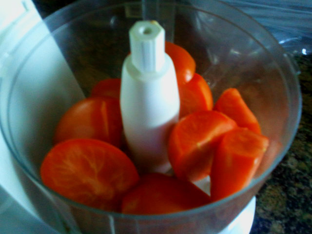 First thing I did was process the tomatoes down just a little. I left them in larger pieces for texture sake but again, do what you want.