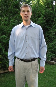 After you put your shirt on, walk around for five minutes than look at it in the mirror. See all that extra shirt at your waist. Cut it out, seriously. That means you need to go in a size or two.