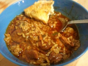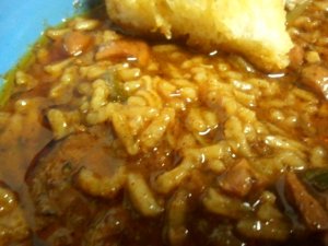 Sausage– Andouille is the authentic choice. It’s a sausage ground up pretty course and mixed with bell pepper, wine, onion and garlic. Very tasty. One of my favorites actually. But I used what I had on had, which was the leftover Italian sausage from a Giambotta I made the day before. (Yeah, that’s right. You can leave your numbers and face shots in the comments.)